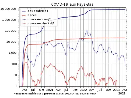 La pandémie de Covid-19 aux Pays-Bas se propage à partir du , lorsque le premier cas est confirmé à Tilbourg[5]. Un premier décès survient le à Rotterdam[6].