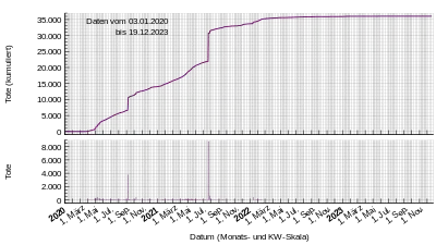 L’excès de mortalité par rapport aux années précédentes s’élève à près de 40 000 personnes au cours de l'année 2020[25].