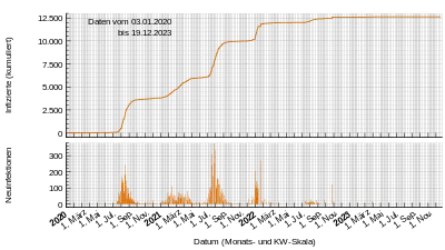 Le 12 décembre 2021, le cap des 10 000 cas est dépassé. Le nombre total de personnes atteintes de la Covid-19 est de 10 034.