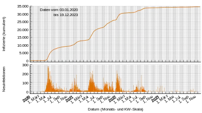 La pandémie de Covid-19 est une crise sanitaire majeure provoquée par une maladie infectieuse émergente apparue fin 2019 en Chine continentale, la maladie à coronavirus 2019, dont l'agent pathogène est le SARS-CoV-2. Ce virus est à l'origine d'une pandémie[note 1], déclarée le par l'Organisation mondiale de la santé.