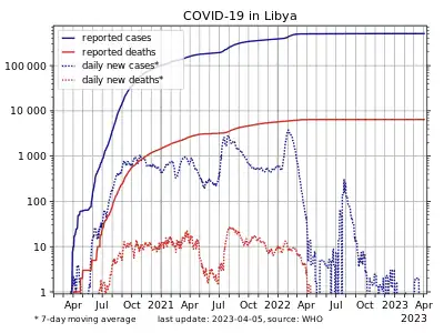 La pandémie de Covid-19 en Libye démarre officiellement le . À la date du , le bilan est de 6 437 morts.