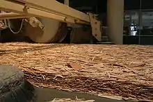 Ils sont fabriqués à partir d’un « matelas » de petits copeaux de bois rectangulaires compressés et encollés avec de la cire et de la résine (95 % de bois et 5 % de cire et de résine). Les couches sont créées par le déchiquetage du bois en lamelles, qui sont ensuite triées et orientées sur tapis. Le nombre de couches est déterminé en partie par l'épaisseur du panneau, mais il est limité par les équipements du site de production.