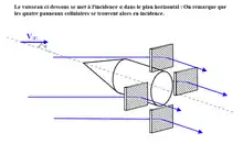 Contrairement à ce que l'expression Ailette en grille incite à penser[20], les panneaux cellulaires ne travaillent pas en traînée. Certes, on peut imaginer de stabiliser une fusée par un dispositif travaillant en traînée (en accrochant à sa queue un parachute, par exemple), mais cette stabilisation serait très coûteuse en énergie. Au contraire, les panneaux cellulaires produisent bien de la portance quand ils sont placés en incidence et assez peu de traînée (comme n'importe quelle aile). D'autre part, lorsque le vaisseau lui-même est placé en incidence (schéma ci-contre) , c'est la totalité des panneaux cellulaires qui se trouvent en incidence et donc producteurs de portance (alors que, s'agissant d'ailettes planes classiques, lorsque le vaisseau est placé en incidence dans un plan contenant l'axe du vaisseau et deux ailettes opposées (cas de quatre ailettes), ce sont les deux autres ailettes seules qui vont stabiliser le vaisseau).