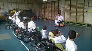 - le kata en individuel et par équipe (équipes de personnes handicapées seulement ou mélangées avec des valides) ;