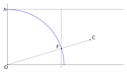 Un avantage de la citadelle est que ses canons se trouvent à une altitude a = OA au-dessus de la plaine. Les boulets vont pouvoir atteindre un point P tel que x = OP > 2h. Plus précisément, x est tel que , soit x = 2√h(h+a). Par le théorème de Pythagore, AP = 2h + a : la distance entre la citadelle A et le point P de portée maximale est donc la somme de l'altitude a avec la portée maximale 2h lorsque le tir est effectué avec une altitude nulle[2]. Ce résultat étonne souvent par sa simplicité. Similairement, les assaillants devront se rapprocher (il suffit de changer a en -a).