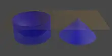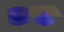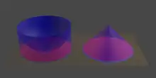 - est le « bol », c'est un cylindre de rayon 1 et de hauteur 1, auquel on a soustrait une demi-sphère de rayon 1, concentrique à la face supérieure.