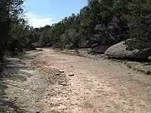 - « Corniche principale » (Main Ledge), dans le lit du ruisseau "Oppossum" qui conflue avec la rivière Paluxy. Ce site assez petit montre principalement des traces de théropodes. Il est peu aisé d'accès mais les traces y sont visibles en permanence[3].