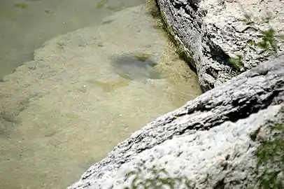 - Empreintes fossilisées de dinosaures dans le lit de rivière