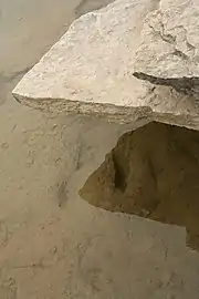 - Toutes ces traces sont souvent recouvertes de sable et de boue (moderne) ; pour les voir au mieux, il est recommandé de les visiter en période de basses eaux à la fin de l'été[3].
