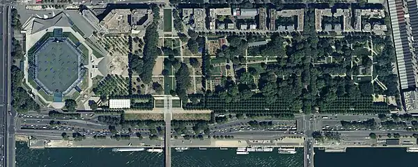 - deux passerelles par-dessus la rue Joseph-Kessel permettent de rejoindre les Parterres, comprenant la « maison du jardinage », une salle d'exposition et un jardin consacré aux activités du travail des plantes : potagers pédagogiques ouverts aux élèves des écoles, vigne, roseraie, buissons taillés, fleurs, etc. ;