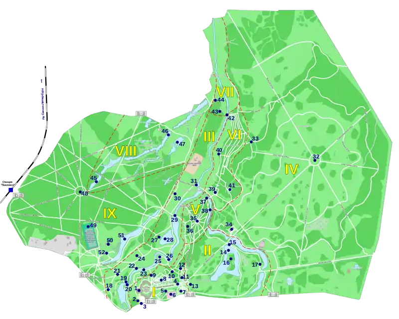 | 17. Colonne de la princesse Lieven | 34. Pavillon des Roses | 48. Salle Ronde |