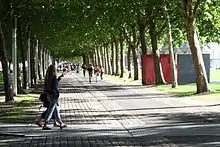 - Des lignes : la galerie de l’Ourcq et la galerie de la Villette. Deux grands axes traversent le parc : l’un nord-sud, la galerie de la Villette, caractérisée par sa couverture en forme de vague. L’autre est-ouest, la galerie de l’Ourcq, qui borde le canal du même nom. Une piste cyclable longeant le canal permet notamment de se rendre à la Villette depuis la place de Stalingrad. La promenade cinématique, chemin sinueux de 3 km, est bordée d’aires de jeux, de jardins paysagers et d’espaces intimistes aux ambiances aquatiques et agrémentés d'œuvres d’art, comme le jardin des bambous conçu par Alexandre Chemetoff qui accueille le Cylindre Sonore de Bernhard Leitner et la Diagonale pour des bambous de Daniel Buren.