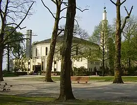 - La Grande mosquée et le Centre islamique, inaugurés en 1978, angle nord-ouest. Le bâtiment d’origine, construit à l’occasion de l’exposition nationale de 1897 par l’architecte Ernest Van Humbeeck dans un style arabisant, abritait une fresque monumentale, le Panorama du Caire. Abandonné ensuite, l’édifice est offert en 1967 par le roi Baudouin au roi Fayçal d’Arabie saoudite qui le fait transformer et restaurer à ses frais par l’architecte tunisien Mongi Boubaker[2].