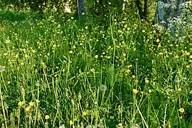 Malgré sa taille, le parc comporte des environnements naturels variés. Près de l'entrée du parc, au sud, se trouvent les prairies, qui sont la principale raison d'existence du parc. Il s'agit d'anciens champs, et de nos jours encore, ils sont entretenus par fauchage au mois d'août[3]. Au printemps et début d'été, ces prairies sont entièrement couvertes de fleurs, dont en particulier l'Ancolie commune (Aquilegia vulgaris), la primevère officinale (Primula veris), l'œillet glauque (Dianthus deltoides), l'orchis mâle (Orchis mascula) ou tacheté (Dactylorhiza maculata subsp. maculata) ainsi que, dans les parties plus humides, la trolle d'Europe (Trollius europaeus) ou la succise des prés (Succisa pratensis)[1]. Ces prairies comportent aussi un certain nombre d'arbres, eux aussi entretenus par élagage, offrant ainsi une image du paysage agricole du XIXe siècle[1].