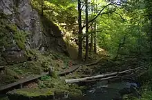 Dans les sols plus riches, comme au fond des vallées ou sur les pentes, la flore est, elle aussi, beaucoup plus riche[S 10]. Ainsi, des espèces comme le merisier à grappes (Prunus padus), le fusain d'Europe (Euonymus europaeus), le noisetier commun (Corylus avellana), le lamier jaune (Lamium galeobdolon) et quelques espèces de fougères parviennent à se développer[S 10]. Sur les versants nord et est se trouvent plusieurs espèces de mousses, dont quelques espèces rares telles que Porella arboris-vitae ou Neckera pumila, ainsi que quelques espèces de lichens, eux aussi rares, tels que la pulmonaire (Lobaria pulmonaria)[S 10]. Les sols les plus riches sont souvent ceux contenant des filons de diabase, on y trouve alors des anémones hépatiques (Hepatica nobilis), des gagées jaunes (Gagea lutea), des anémones fausse renoncule (Anemone ranunculoides), des mercuriales vivaces (Mercurialis perennis) et des gaillets odorants (Galium odoratum)[S 10].