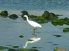 Une petite partie du littoral est colonisée par deux espèces rares, l’algue rouge (Lithophyllum lichenoides) et l’arapède géante (Patella ferruginea)[2].