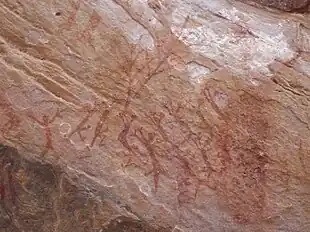 Les hommes ont utilisé la partie protégée des abris sous roche pour la représentation graphique de leurs traditions orales[1].