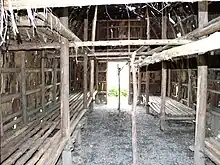 Reconstitution d'une maison longue sur l'île Grosbois.