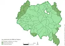 Ainsi que 14 communes partenaires[7] qui correspondent à des "communes bénéficiant d'une proximité géographique, historique, économique, culturelle... Avec le territoire du Parc. [...] Elles ont été sollicitées pour valider la Charte et adhérer au Syndicat Mixte d'Aménagement et de Gestion."[7] :