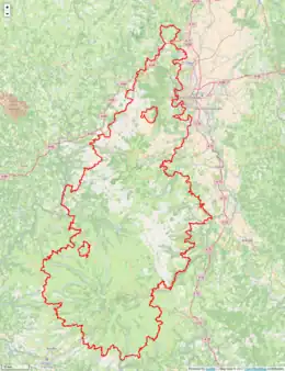 Situé au cœur de l'Auvergne, le parc qui s'étire du Nord au Sud sur 120 km sur les deux départements du Cantal et du Puy-de-Dôme est composé de 147 communes qui rassemblaient environ 90 000 habitants en 2005[1]. Son altitude oscille entre 400 et 1 885 mètres.