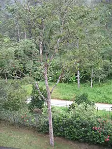 Un arbre de petai peut atteindre jusqu’à 40 mètres. L'écorce de son tronc est lisse et rouge brun.