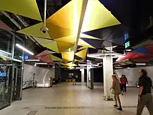 Au-dessus des quais, une longue mezzanine est aménagée afin de redistribuer les passagers depuis les accès vers les quais et vice-versa. Ce niveau comprend les portillons d'accès et la station de contrôle. La mezzanine est située à 15 m sous la rue.