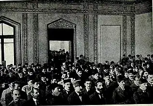 Parlement de la République démocratique d'Azerbaïdjan - le premier parlement établi dans l'Orient musulman (le , à 13h00).