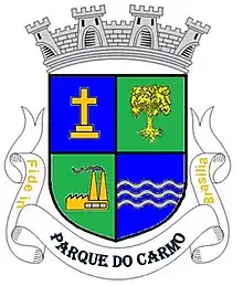 Description Héraldique : Sur un champ d'azur, dans le Canton du Chef, une Croix d'or évoquant l'histoire de la formation du District avec la présence des Carmélites au XVIIIe siècle. Dans le Canton sinistre du Chef, en champ de sinople se trouve un arbre d'or, représentant l'une des plus grandes richesses de la région, le complexe écologique du Parque do Carmo. Dans le canton dextre du Contre-Chef, en sinople, un bâtiment d'or avec fenêtres et fumoirs d'argent, représentant le développement industriel de la région. Dans le Canton sinistre du Contre-Chef, en champ d'azur, des lignes ondulées d'argent, représentant les différentes rivières et sources présentes dans la région. Au-dessus des armoiries, une couronne murale d'argent avec 4 tours, représentant le statut de district de Parque do Carmo. Dans un listel d'argent, libre sur l'écu, la légende « Fide in Brasilia » (Foi au Brésil) est inscrite aux extrémités, d'azur. Et au Centre, également d'azur, la légende Parque do Carmo[6],[7].