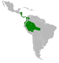 La paruline à croupion fauve se trouve au Honduras, au Nicaragua, au Costa Rica, au Panama, en Colombie, en Équateur, au Pérou, dans l'ouest du Brésil et au nord-est de la Bolivie.