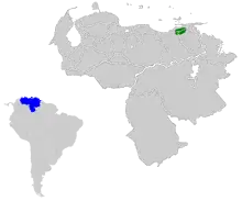 Zone de répartition de l'espèce au Venezuela (en vert).