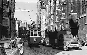 Le parvis était parcouru par les lignes de tramways C, D et E en voie unique.