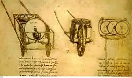 Un odomètre, instrument qui mesure la distance parcourue par un véhicule, fut décrit pour la première fois par le Romain Vitruve vers 25 av. J.-C. ; dans le dixième volume de son De architectura, il présente un odomètre, installé dans un chariot, qui consistait en une série de roues dentées liées par une progression de retenue. La première roue était entraînée par une des roues du chariot et la dernière faisait tomber une petite boule dans un sac à chaque mille romain parcouru[28].