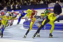 Dans cette discipline, les patineurs partent tous en même temps sur un anneau de vitesse ou une piste naturelle pour une longue distance[1].