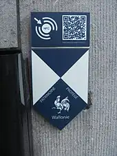 Bouclier bleu apposé sur les monuments protégés en Région wallonne. Nouveau modèle créé en avec Code QR et URL[1].