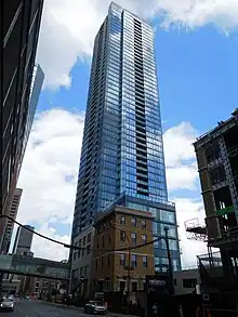 Il s'agit d'un modèle plutôt récent de tour d'habitation en copropriété. Ces tours construites en hauteur peuvent contenir plusieurs centaines de logements.