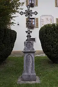 Croix de Mission | 46° 05′ 02″ N, 6° 43′ 36″ E | Croix située devant l'église. Fabriquée en fer et en pierre en 1880[10].