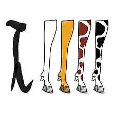 Il représente une patte de bovin (Bos taurus) blanche, parfois jaune, bigarré rouge et blanc ou noir et blanc. Il est translittéré wḥm.t ou wḥm.