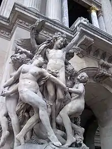 - Le Baiser, haut-relief dans l'escalier d'honneur de la mairie du XXe arrondissement de Paris.