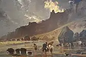 - Vue du château d'Arques, à Dieppe, Salon de 1840, huile sur toile, 115 x 187 cm, musée des Beaux-Arts d'Orléans[42],[43]