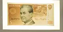Le billet de 5 couronnes de l'Estonie est à son effigie[14].