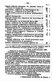Liste de souscription au monument Henry lancée par La Libre Parole d’Édouard Drumont.