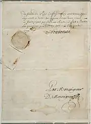 Commission de Louis de Buade, comte de Frontenac, nommant Le Moyne de Maricourt comme remplaçant de Le Moyne d'Iberville, 15 mai 1690 | ||