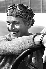 Paul Newman est également connu pour son implication dans le sport automobile[25],[2]. Il découvre la compétition automobile en 1968, à l'occasion du tournage du film Virages dans lequel il jouait le rôle principal, celui d'un pilote des 500 miles d'Indianapolis tentant de concilier sa carrière et sa vie sentimentale.