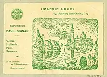 Paul Signac[2], né le à Paris, où il meurt le , est un peintre paysagiste français, proche du mouvement libertaire[3], qui donna naissance au pointillisme, avec le peintre Seurat. Il a aussi mis au point la technique du divisionnisme. Cofondateur avec Seurat de la Société des artistes indépendants dont il fut président, il est ami avec Victor Dupont, peintre fauve et vice-président du Salon.