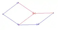 Il est aussi possible de paver le plan à l'aide de deux figures géométriques simples comme les deux losanges suivants. À condition de les assembler en respectant la couleur et le sens des vecteurs. Ces contraintes d'assemblage assurent que le pavage obtenu ne sera pas périodique. Comme précédemment, il existe une infinité de pavages du plan non périodiques à l'aide de ces deux pièces.