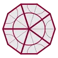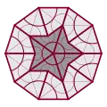 La mathématicienne allemande Petra Gummelt a prouvé en 1996 qu'un pavage de Penrose pouvait être obtenu en recouvrant le plan uniquement avec des décagones, à condition toutefois que deux types discrets d'empiètement soient permis[9]. Le décagone proposé est décoré avec cinq cerfs-volants et l'empiètement permis ne change pas la configuration de ces parties coloriées.