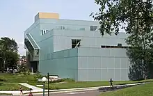 Un objectif de l’agrandissement actuel est de rejoindre la rue, dans les deux sens de l’expression, par un lien architectural significatif de style postmoderne.