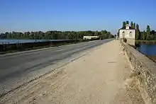 En face, de l'autre côté de la route, une construction analogue est édifiée. On y retrouve une base et un escalier d'accès identiques, mais aucun pavillon n'est bâti : à la place n'est située qu'une simple plate-forme dominant l'étang.
