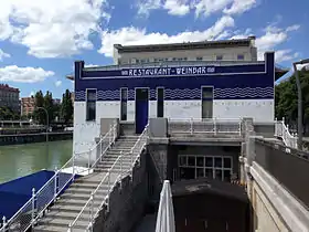 Dans le cadre des travaux de régulation du cours du canal du Danube[7], Otto Wagner construit l'écluse de Nussdorf en 1894-1898 et celle de Kaiserbad en 1904-1908[8].