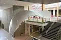 Une sculpture d'Hélène Rochette — Équilibre — est suspendue au-dessus de l'escalier nord dans le corridor intérieur.